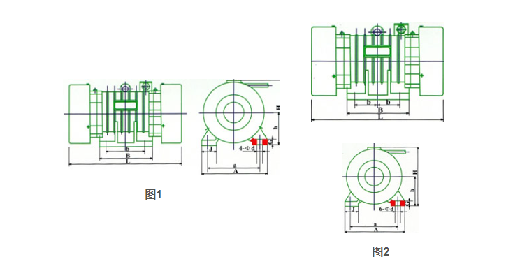 | 型號 | 激振力 KN | 額定功率KW | 額定電流A | 振動(dòng)次數(shù)次/分 | 安裝型式 | L | B | b | A | a | h | H | G | J | d | 圖 |